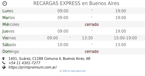 | Viernes | abierto 24 horas | |||||
