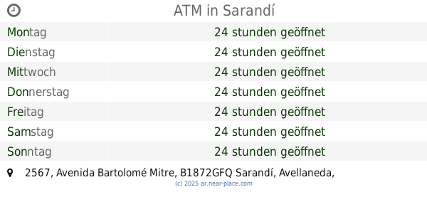 | Samstag | 24 stunden geöffnet | |||||