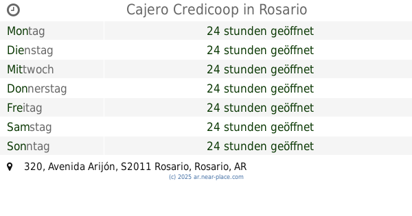 | Dienstag | 24 stunden geöffnet | |||||