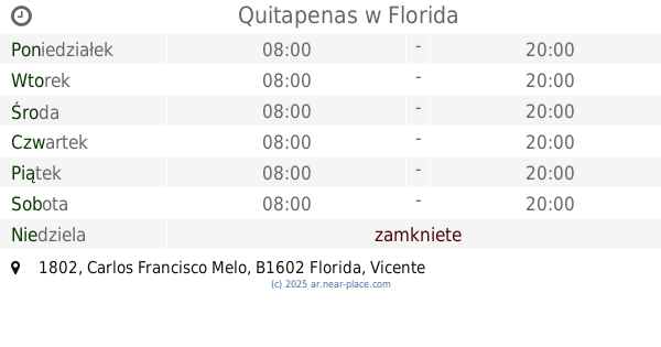 | Niedziela | zamkniete | |||||