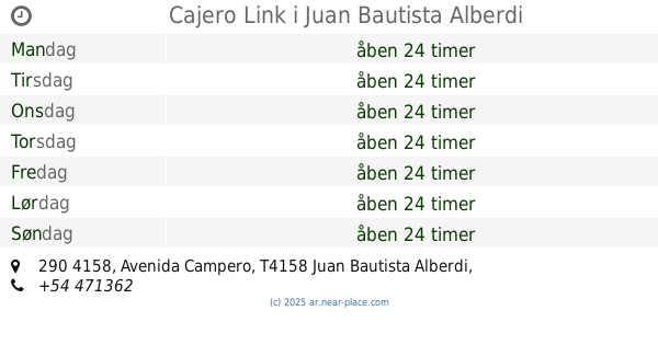 | Mandag | åben 24 timer | |||||