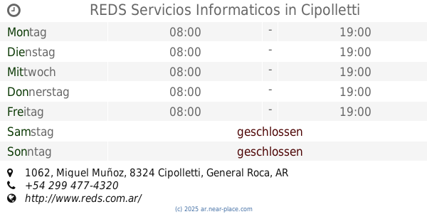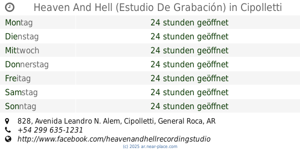 | Dienstag | 24 stunden geöffnet | |||||