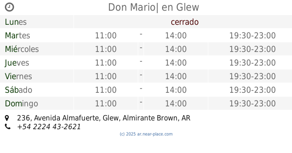 | Miércoles | cerrado | |||||