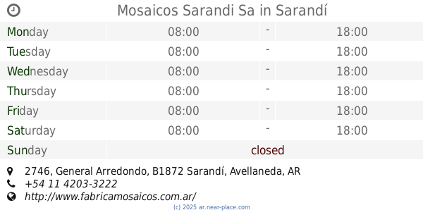 | Sunday | closed | |||||