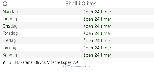 | Tirsdag | åben 24 timer | |||||
