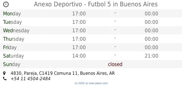| Saturday | closed | |||||
