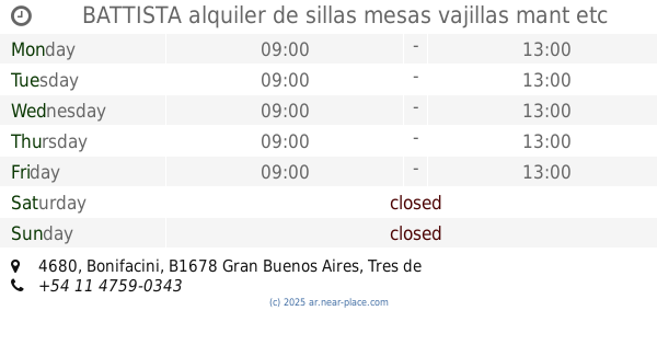 BATTISTA alquiler de sillas mesas vajillas mant etc .para fiestas