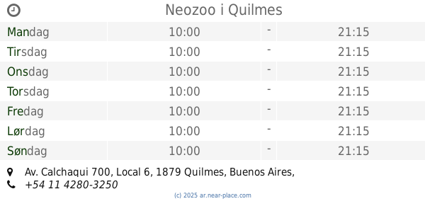 | Mandag | åben 24 timer | |||||