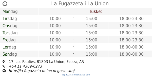 | Fredag | åben 24 timer | |||||