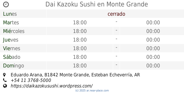 | Lunes | abierto 24 horas | |||||