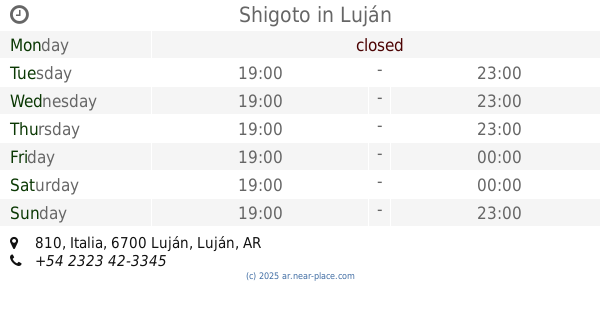 | Tuesday | closed | |||||