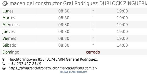 Almacen del constructor Gral Rodriguez DURLOCK ZINGUERIA