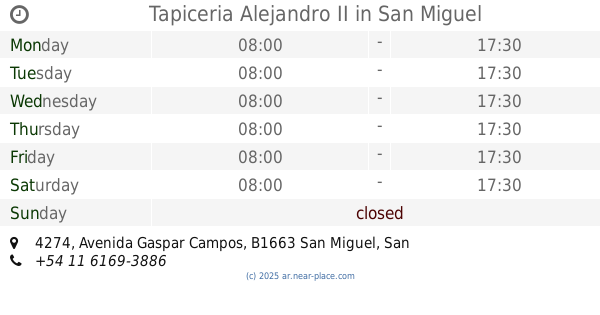 | Sunday | closed | |||||